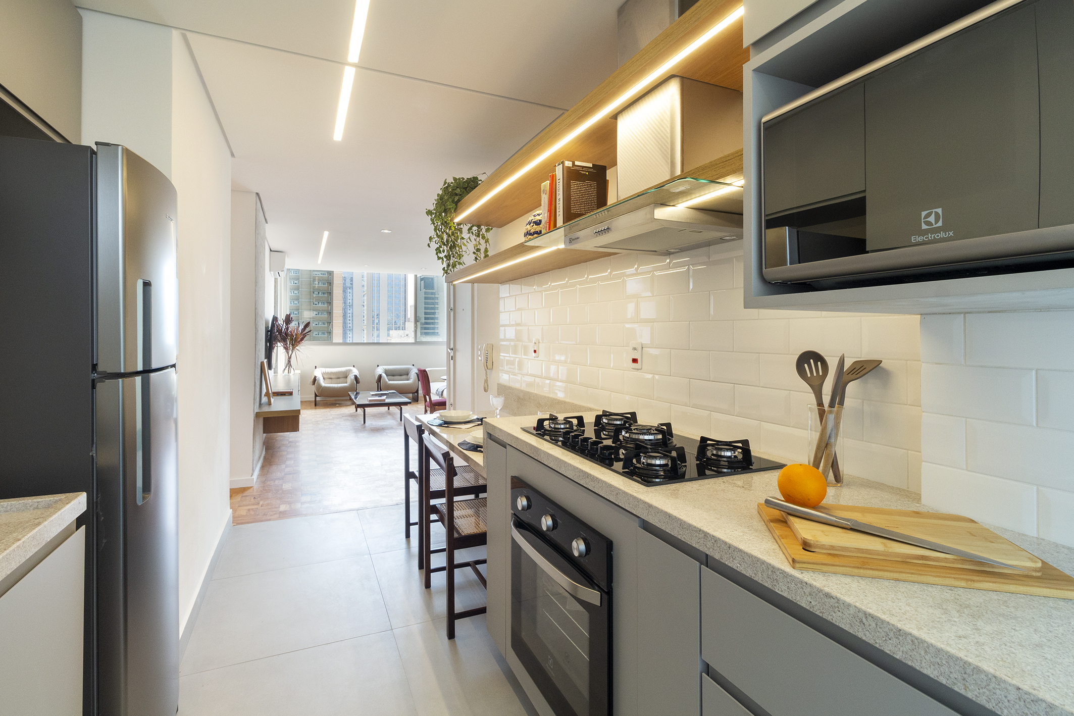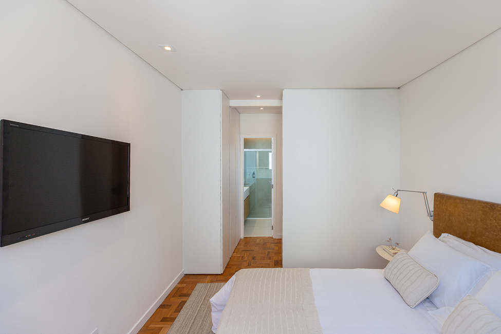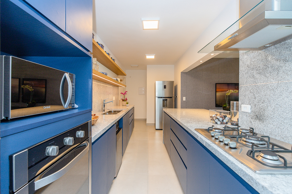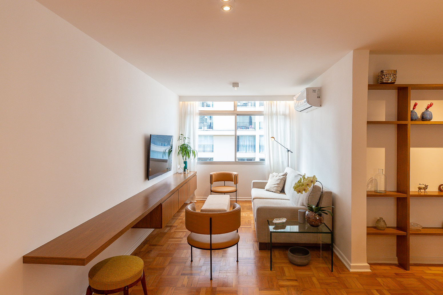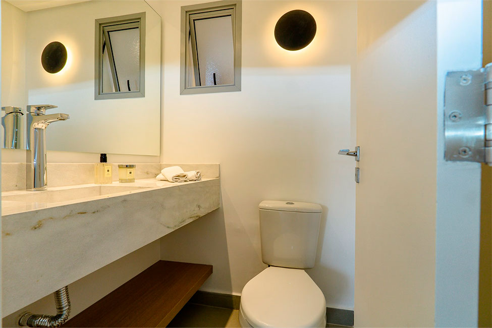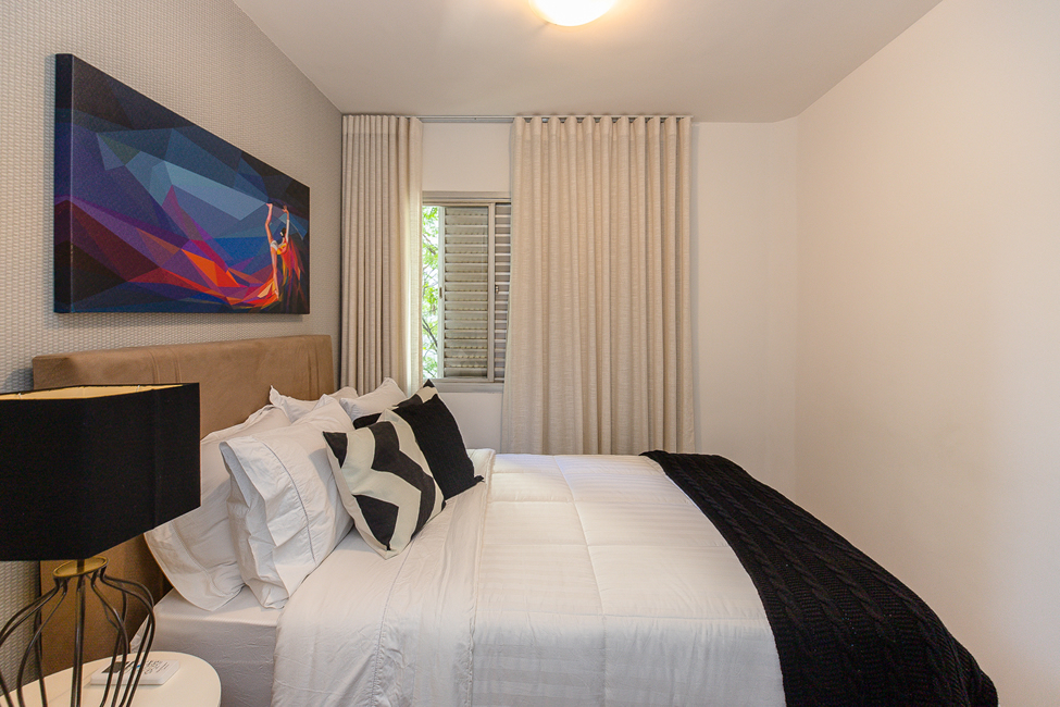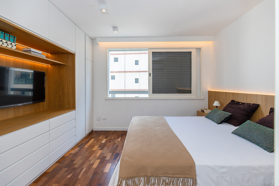 Mobiliado; Equipado com eletrodomésticos; Ar condicionado em todos os ambientes; Cozinha americana; sala de jantar, sala de TV, Quarto amplo, bem iluminado, armários personalizados nos dois quartos principais, deposito, WC de serviço;