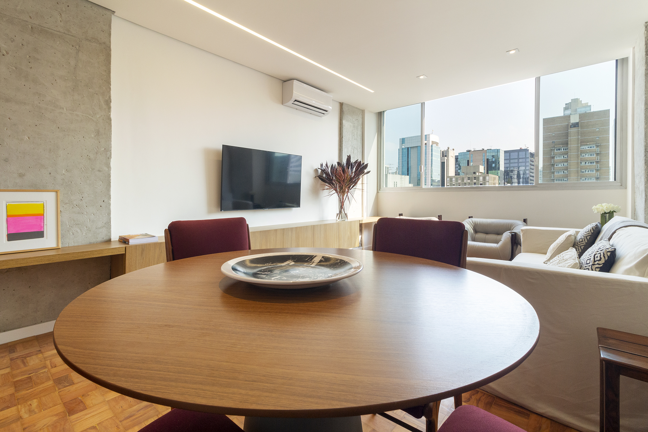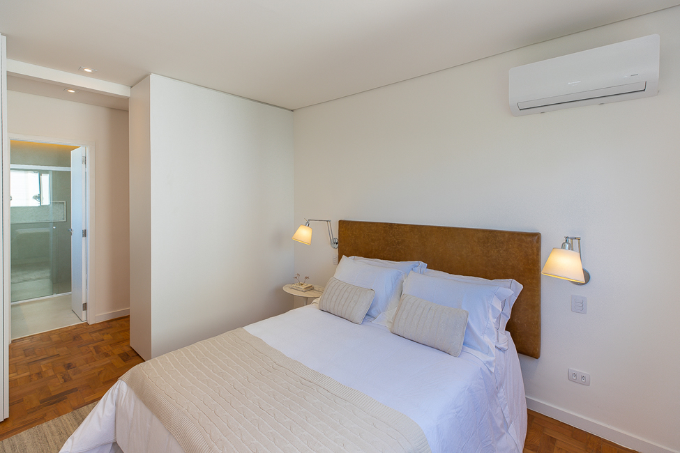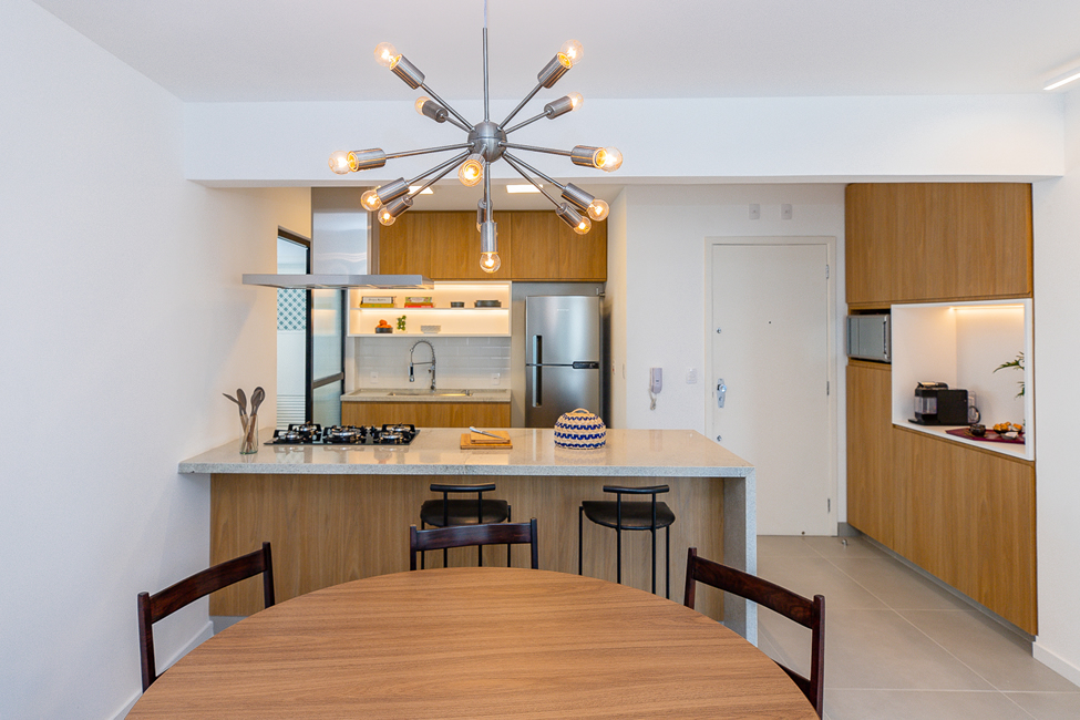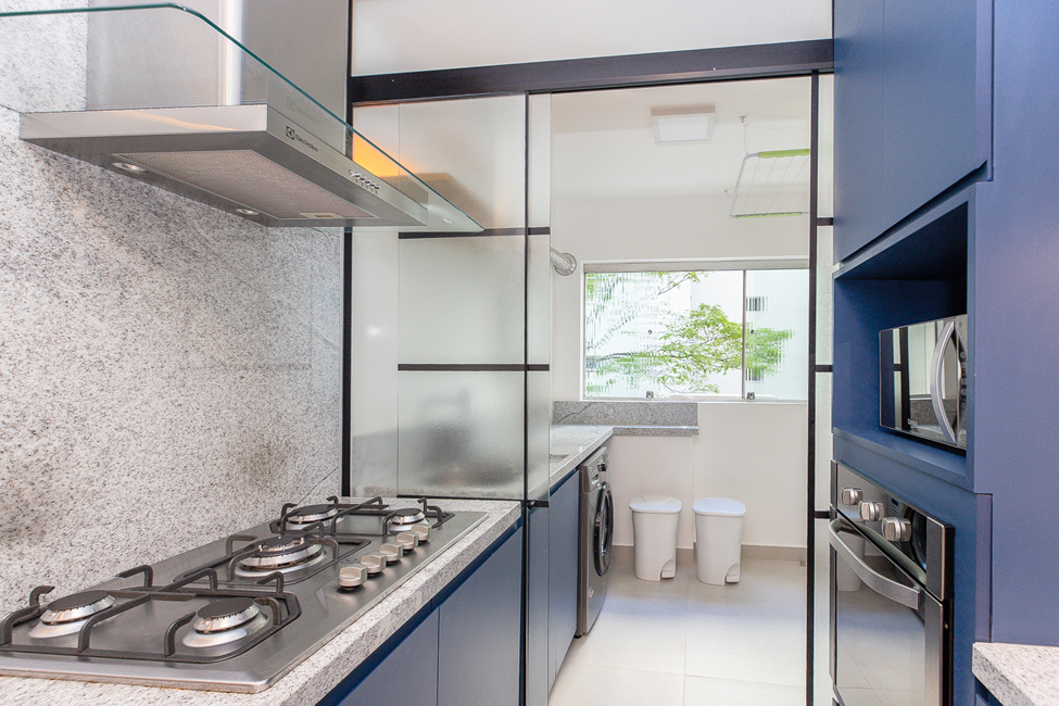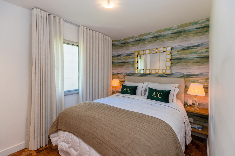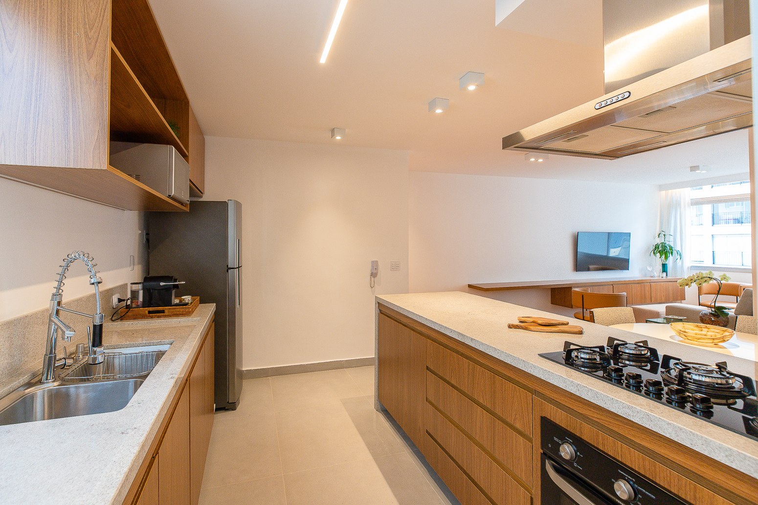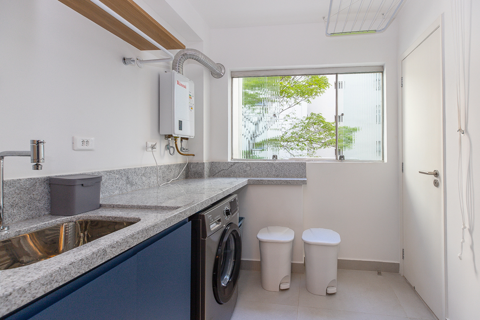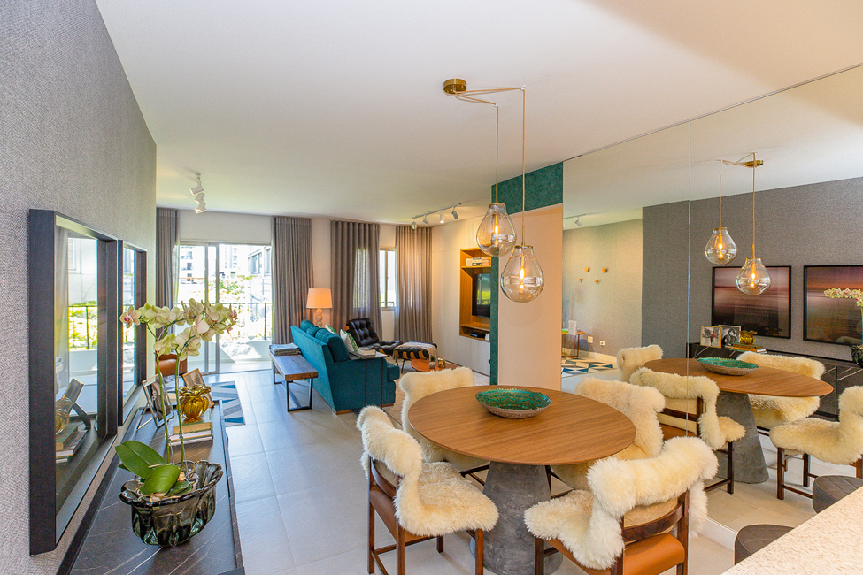 Mobiliado; Equipado com eletrodomésticos; Ar condicionado em todos os ambientes; Cozinha americana; sala de jantar, sala de TV, Quarto amplo, bem iluminado, armários personalizados nos dois quartos principais, deposito, WC de serviço;