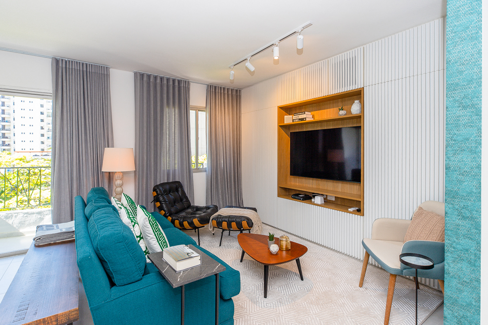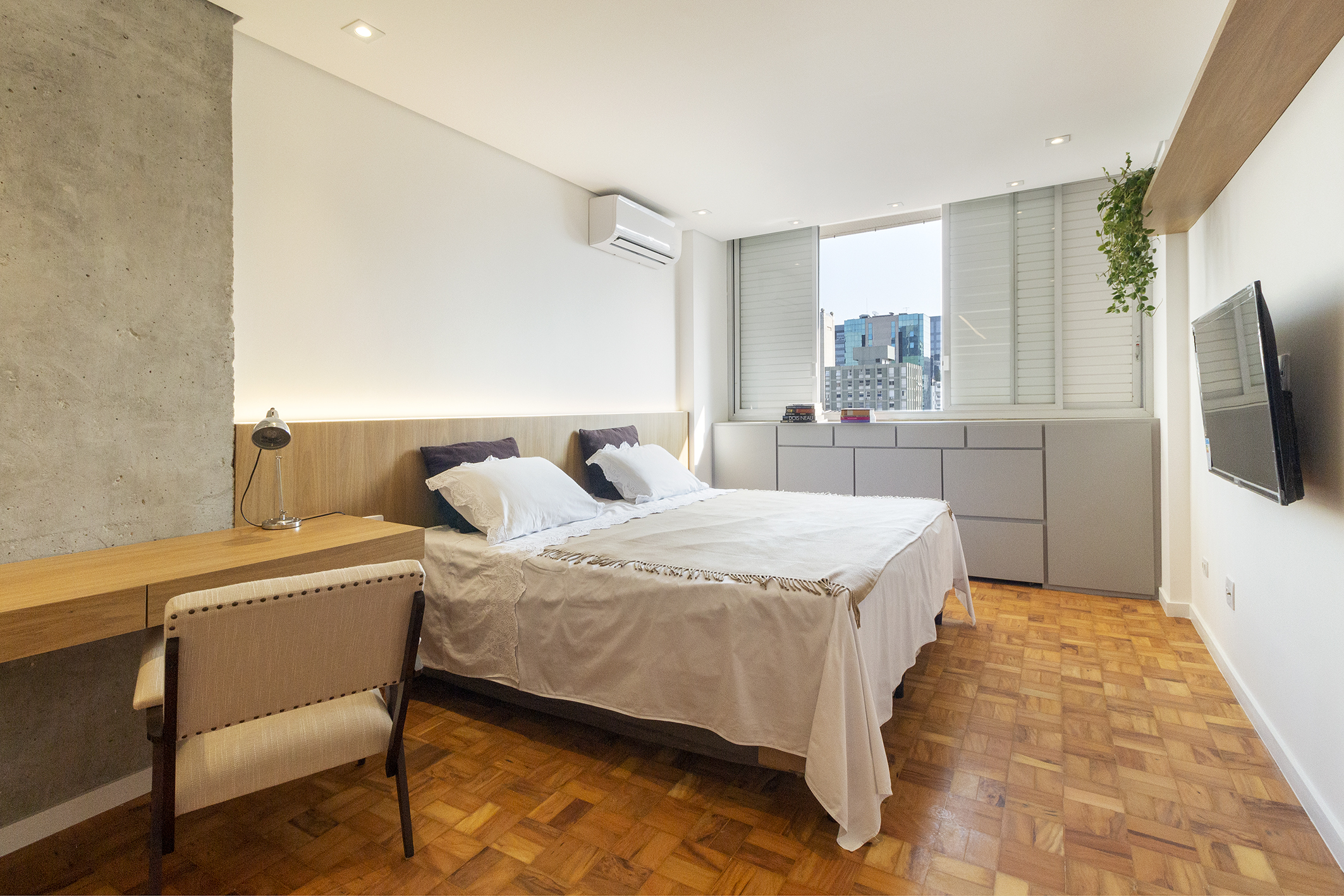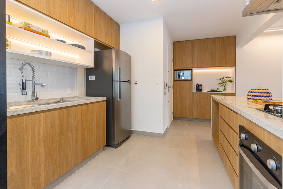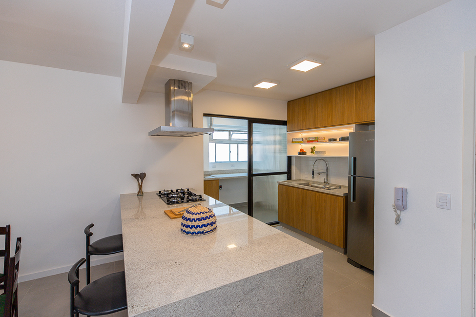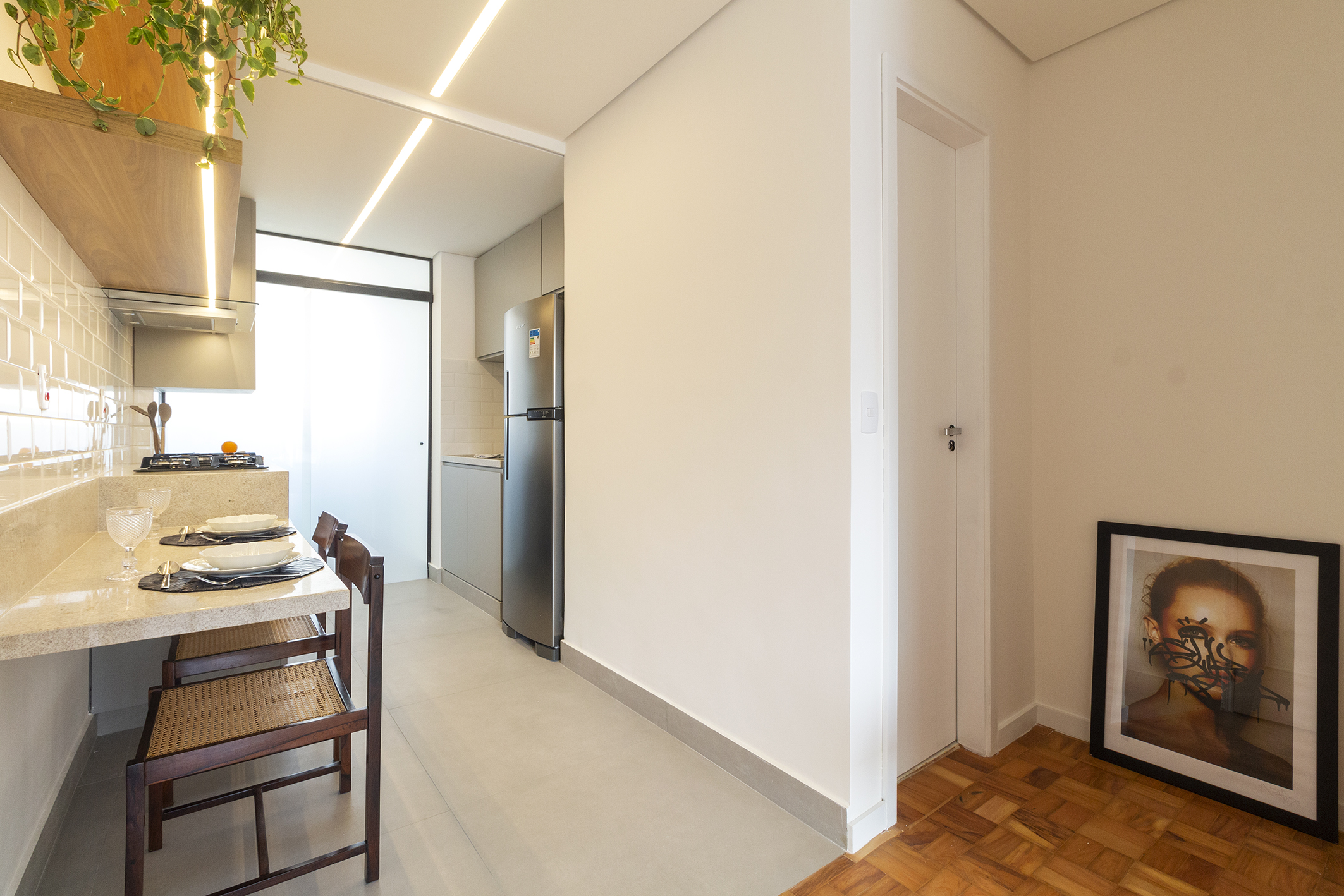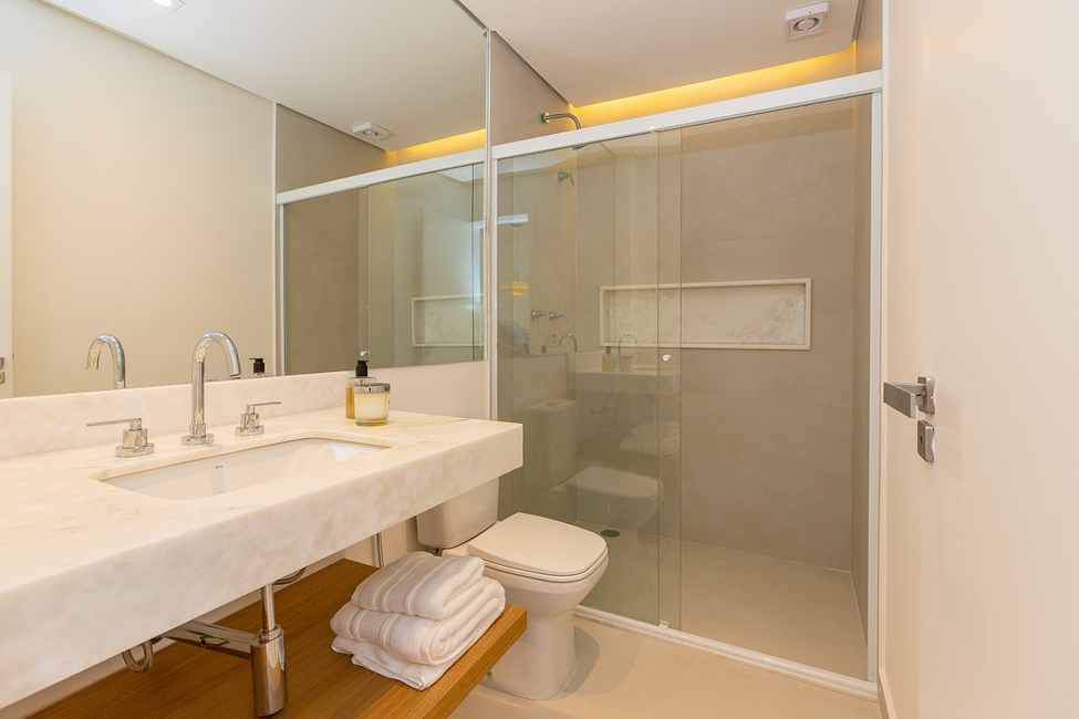 Mobiliado; Equipado com eletrodomésticos; Ar condicionado em todos os ambientes; Cozinha americana; sala de jantar, sala de TV, Quarto amplo, bem iluminado, armários personalizados nos dois quartos principais, deposito, WC de serviço;