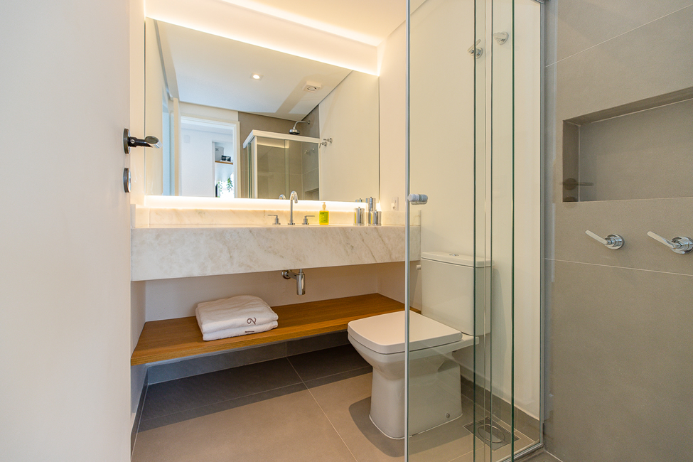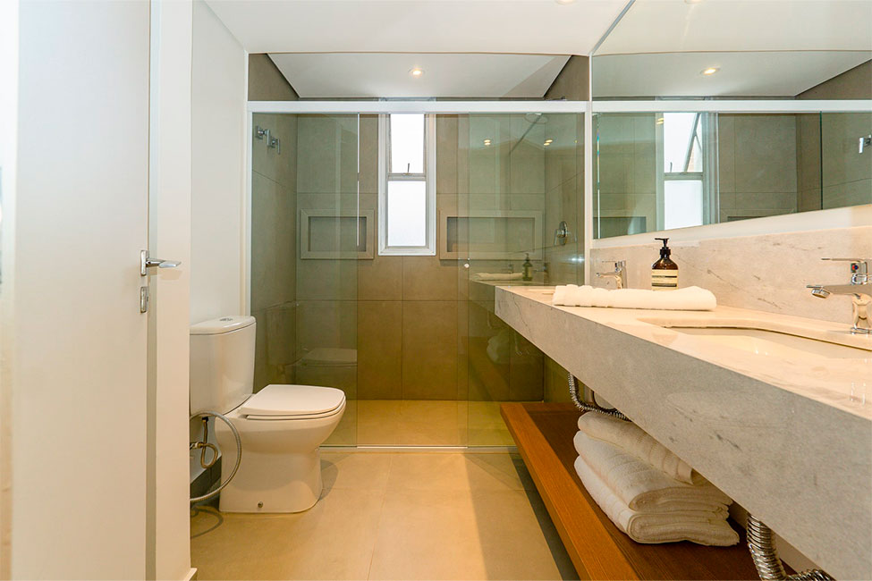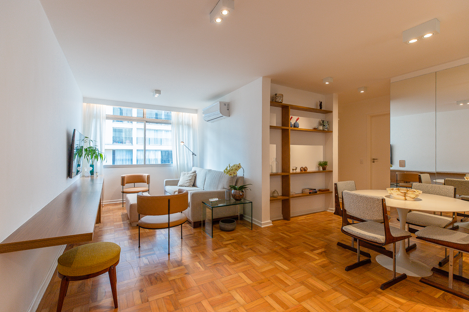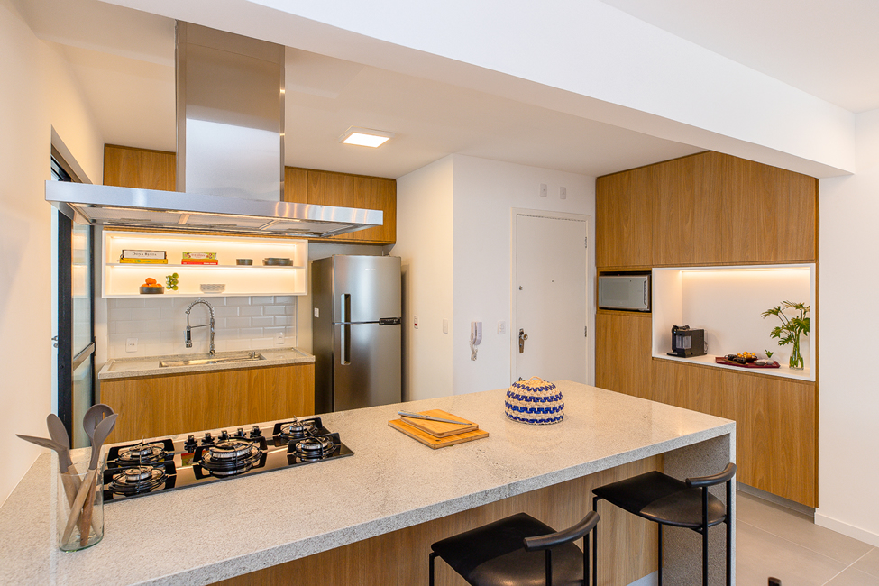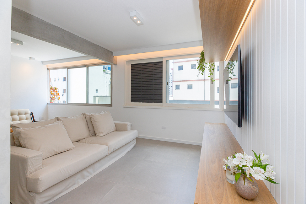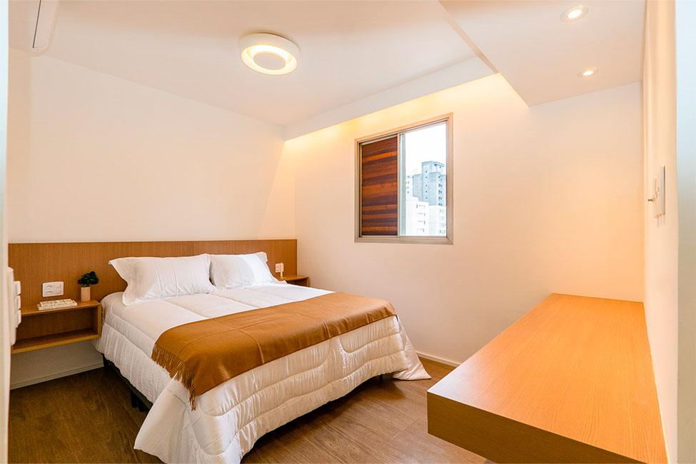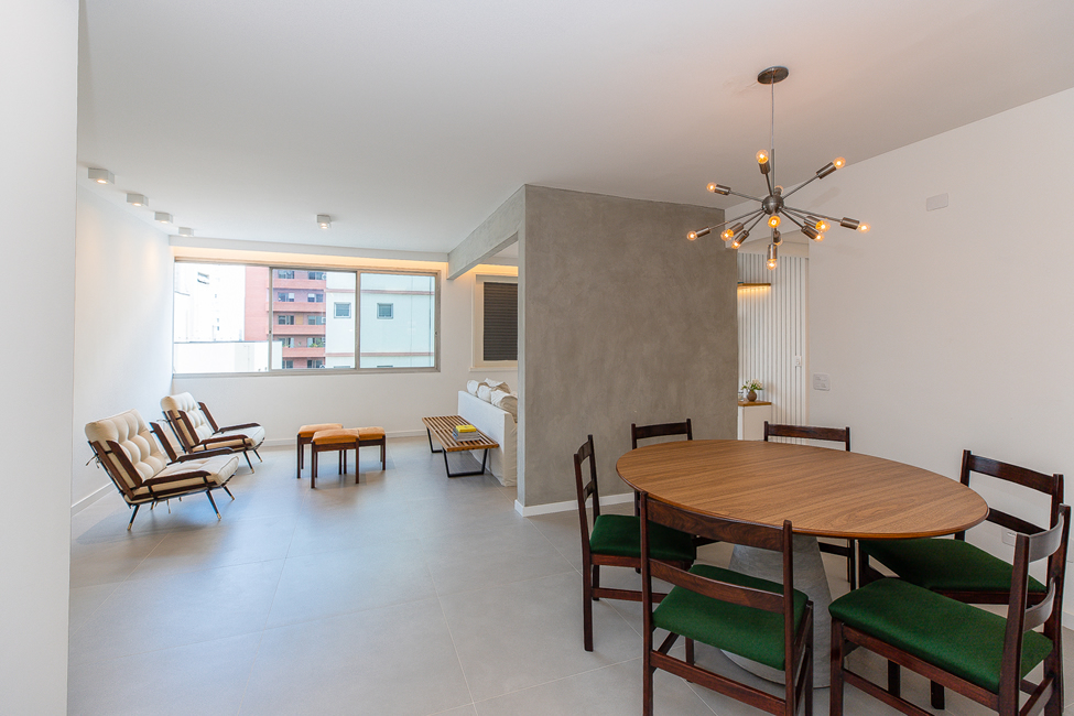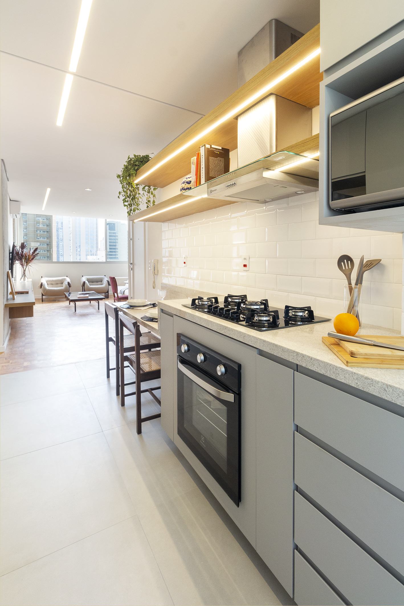 Mobiliado; Equipado com eletrodomésticos; Ar condicionado em todos os ambientes; Cozinha americana; sala de jantar, sala de TV, Quarto amplo, bem iluminado, armários personalizados nos dois quartos principais, deposito, WC de serviço;