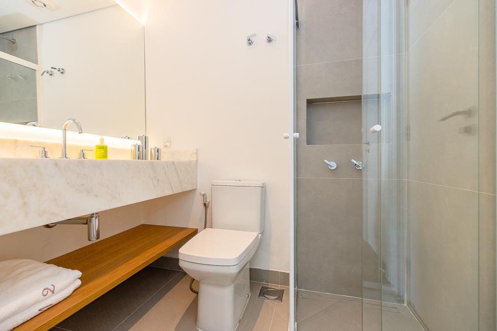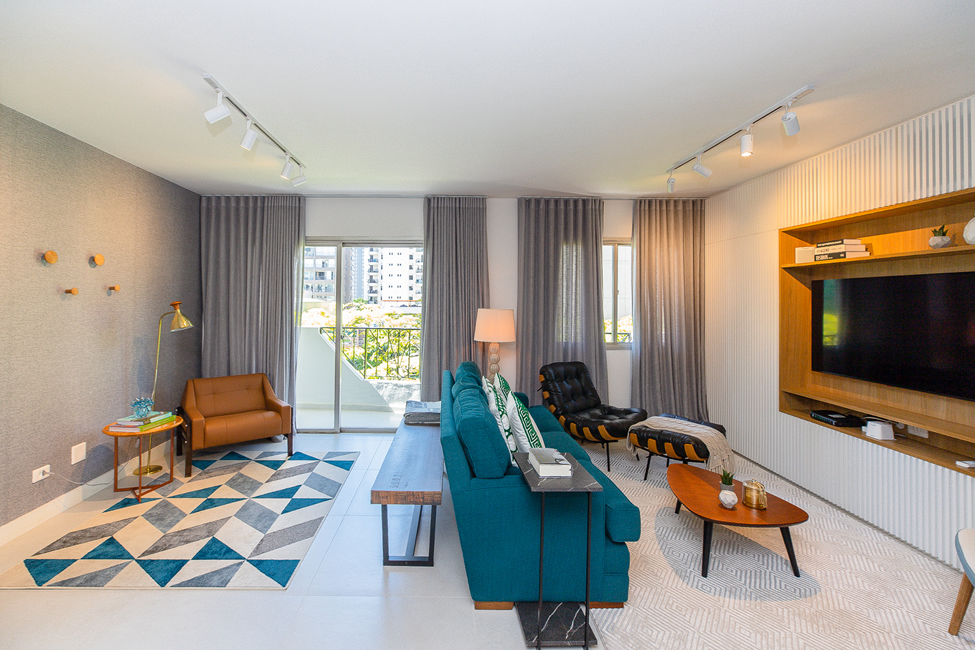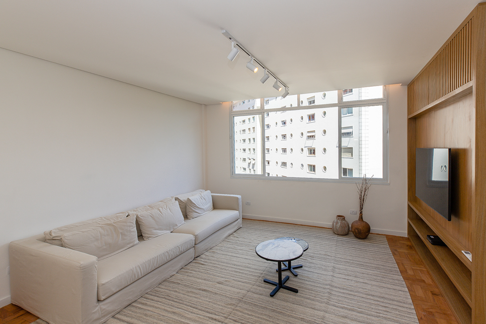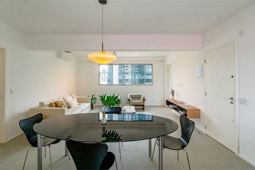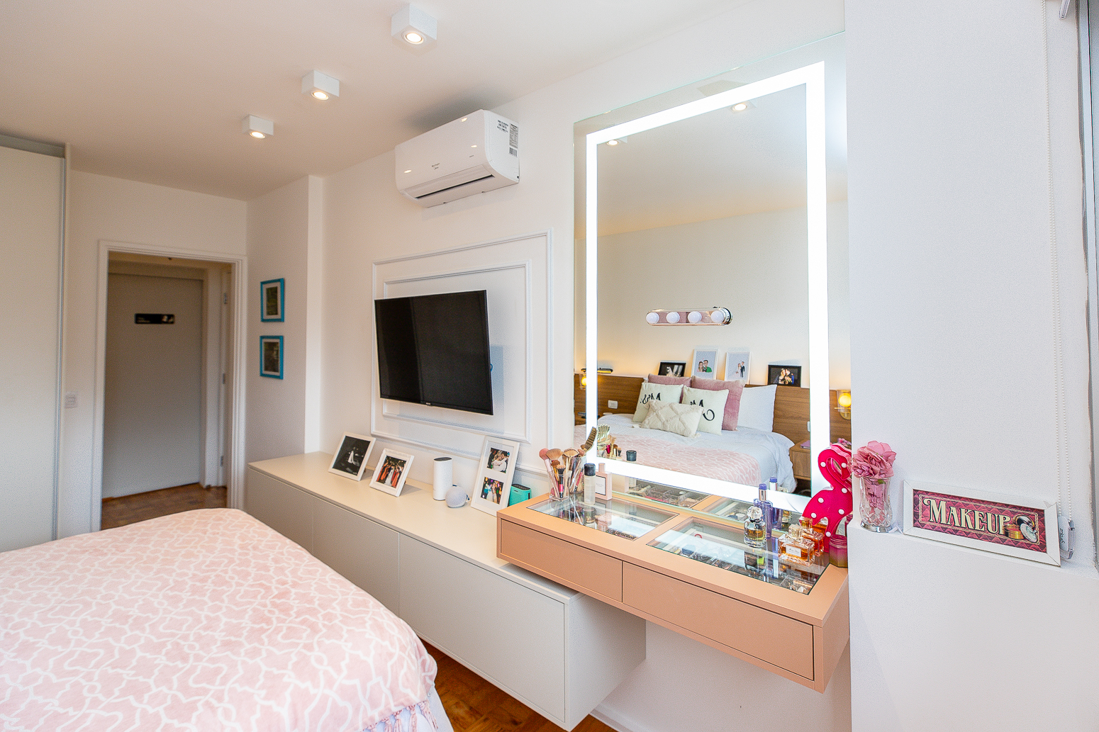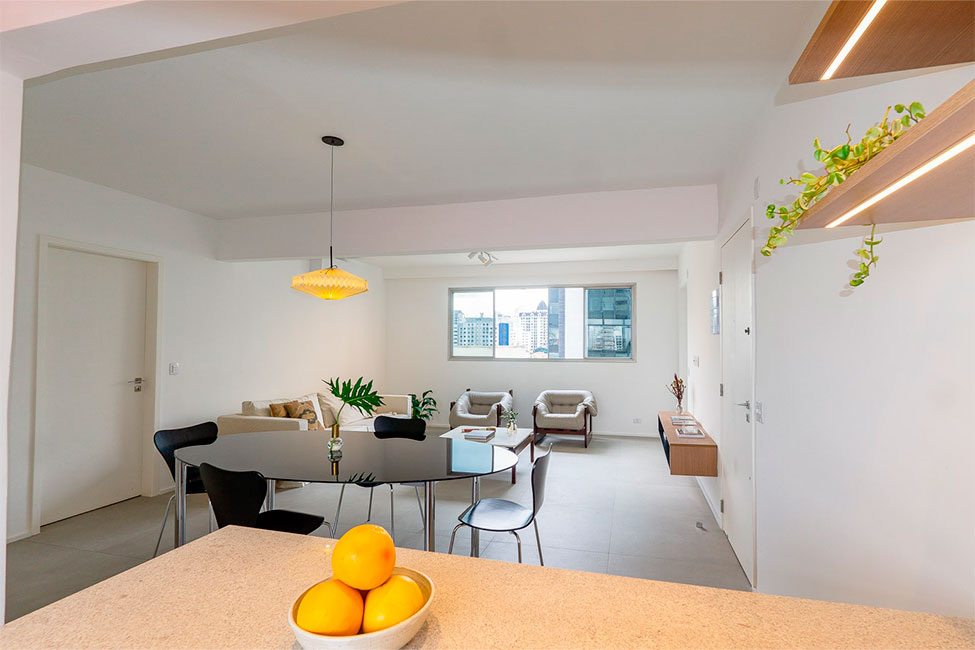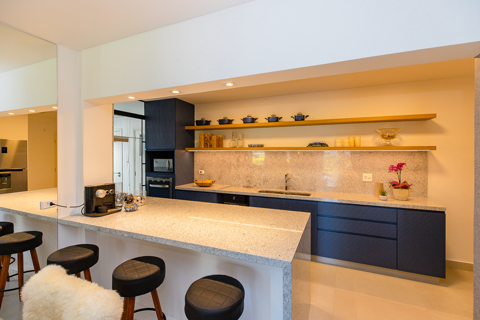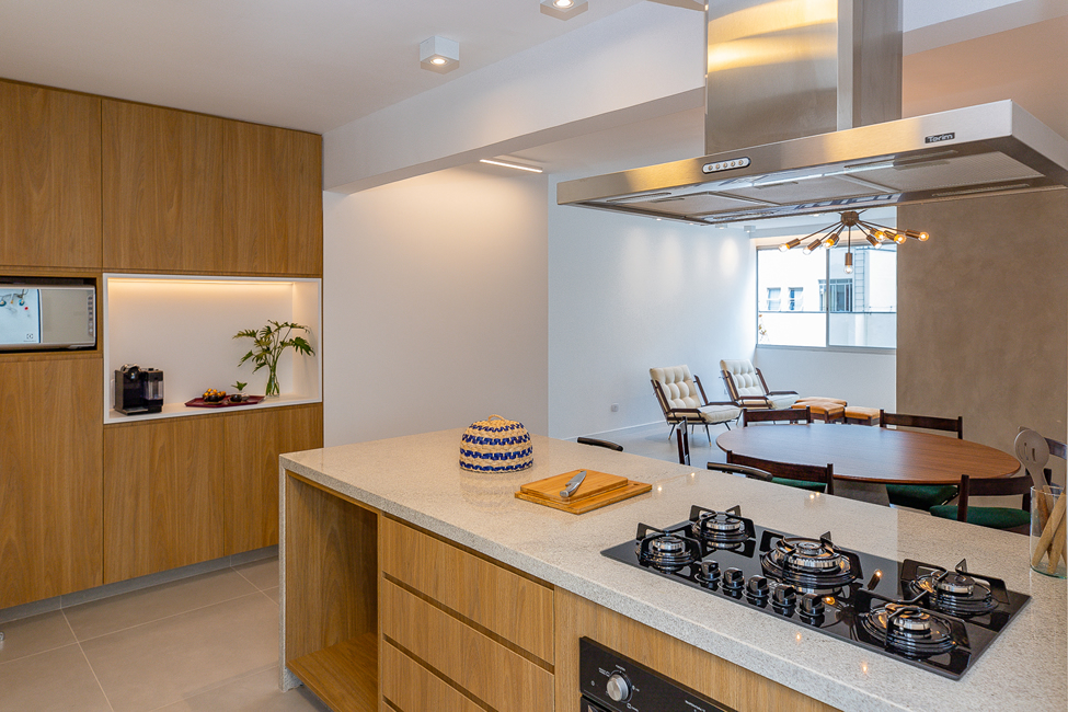 Mobiliado; Equipado com eletrodomésticos; Ar condicionado em todos os ambientes; Cozinha americana; sala de jantar, sala de TV, Quarto amplo, bem iluminado, armários personalizados nos dois quartos principais, deposito, WC de serviço;