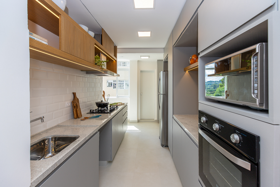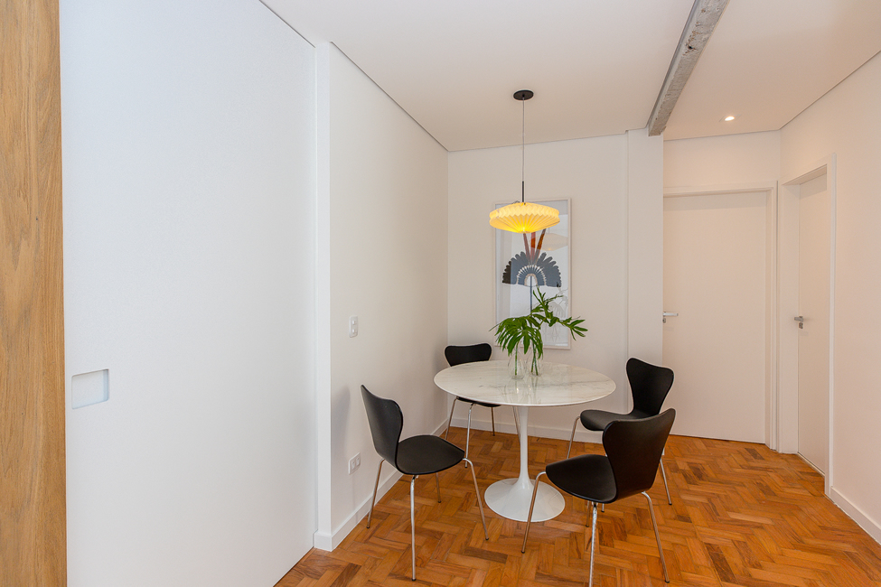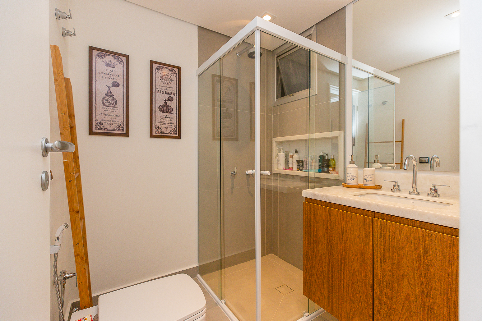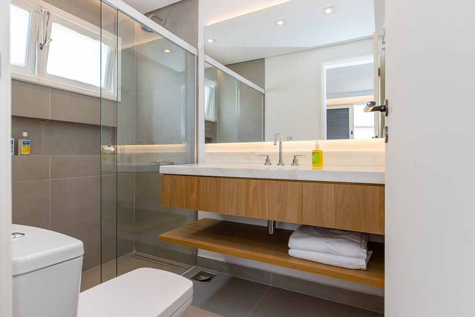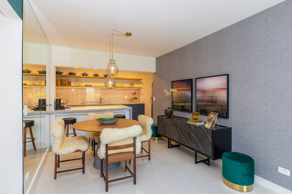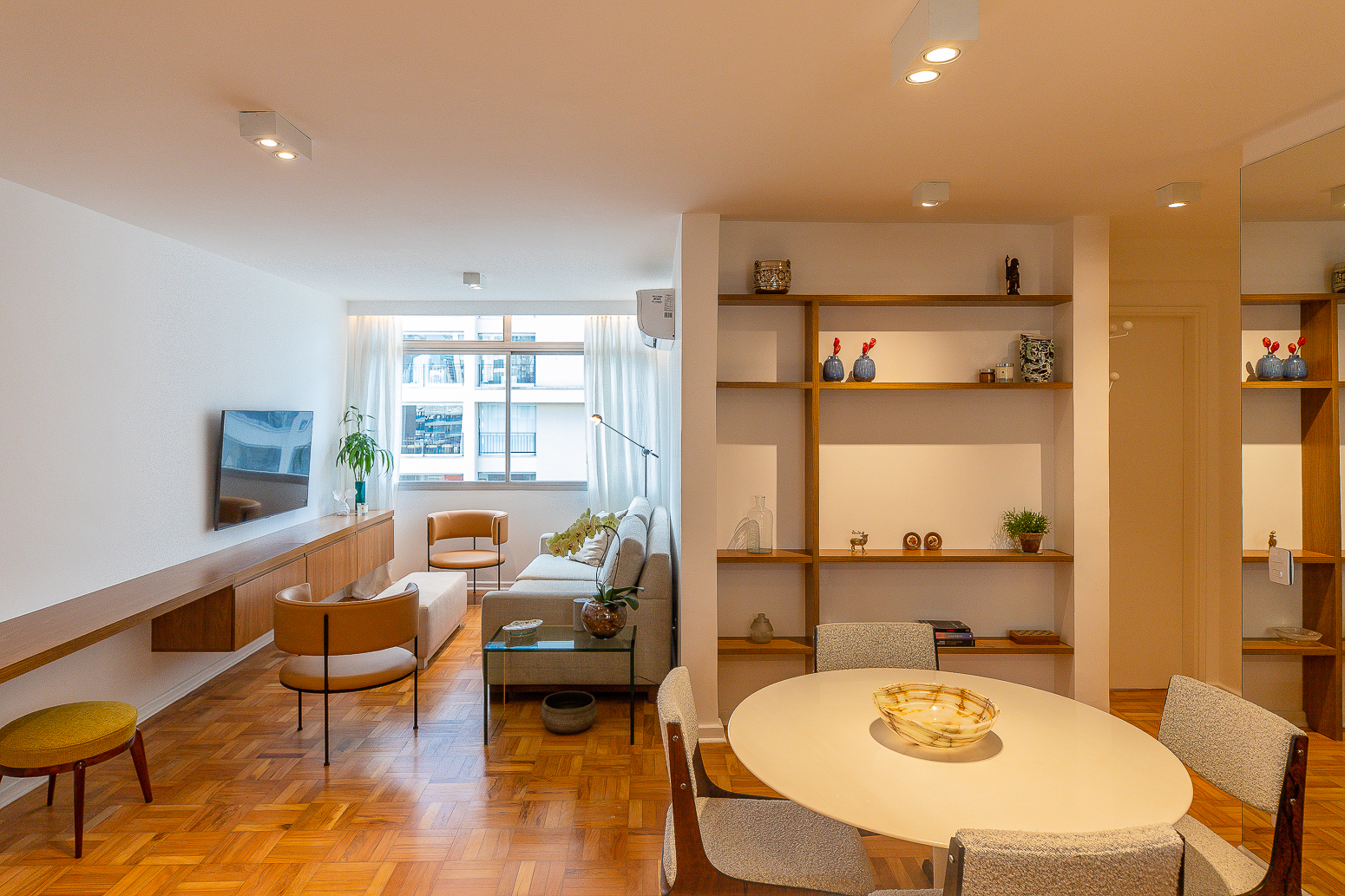 Mobiliado; Equipado com eletrodomésticos; Ar condicionado em todos os ambientes; Cozinha americana; sala de jantar, sala de TV, Quarto amplo, bem iluminado, armários personalizados nos dois quartos principais, deposito, WC de serviço;