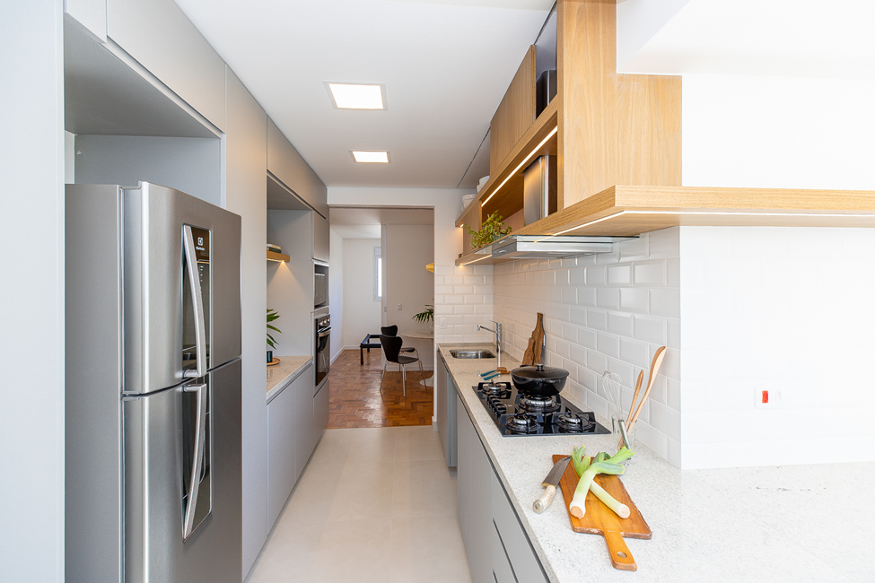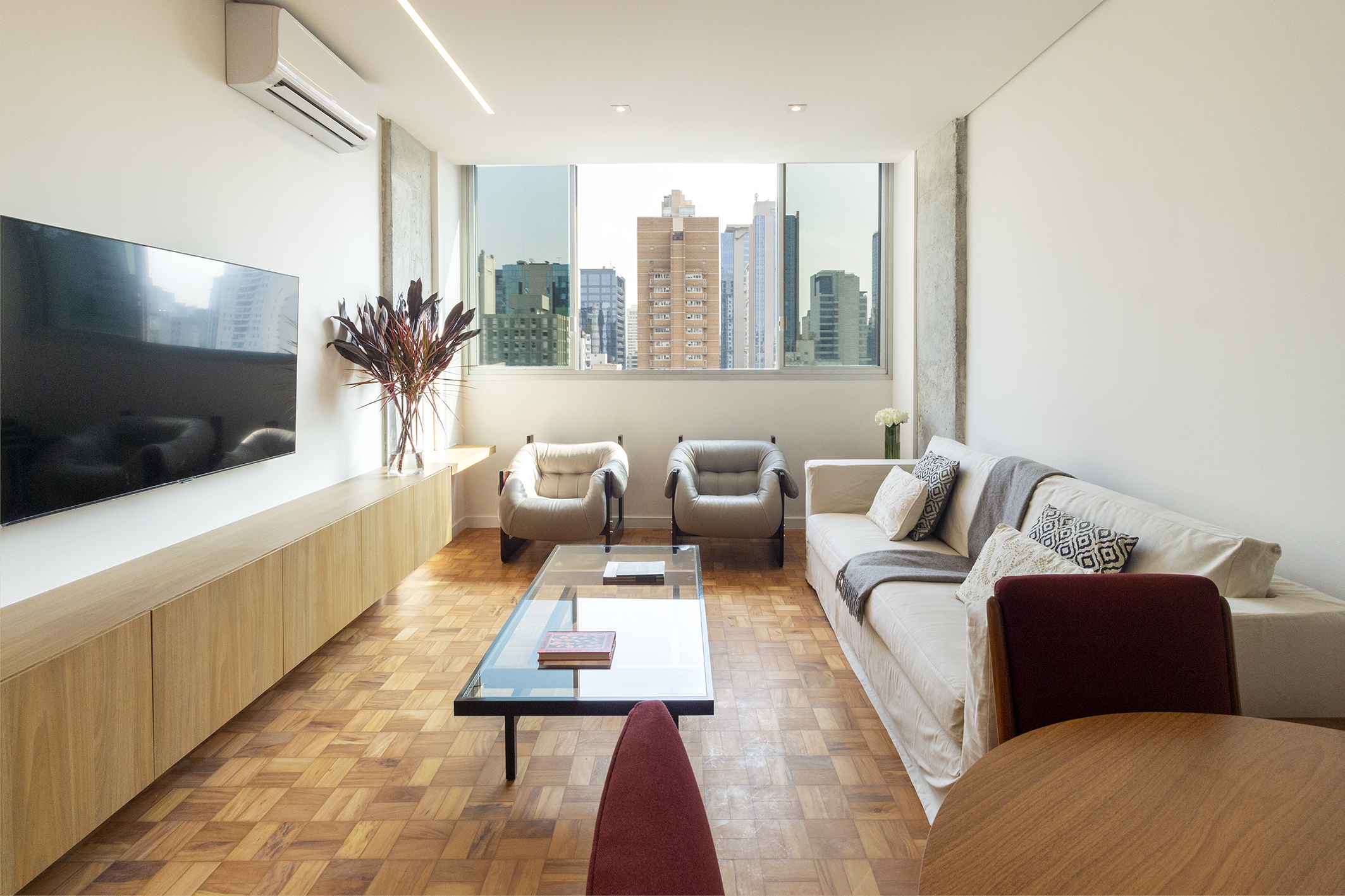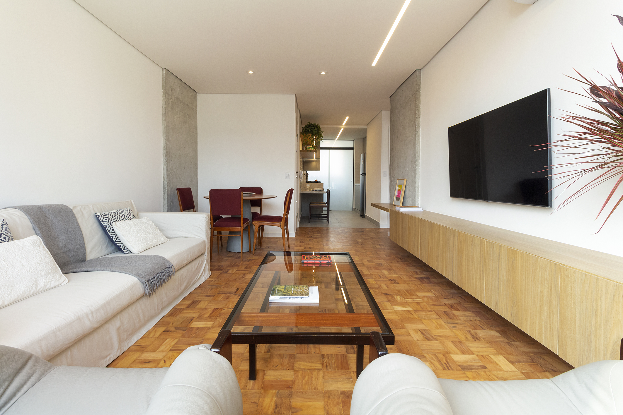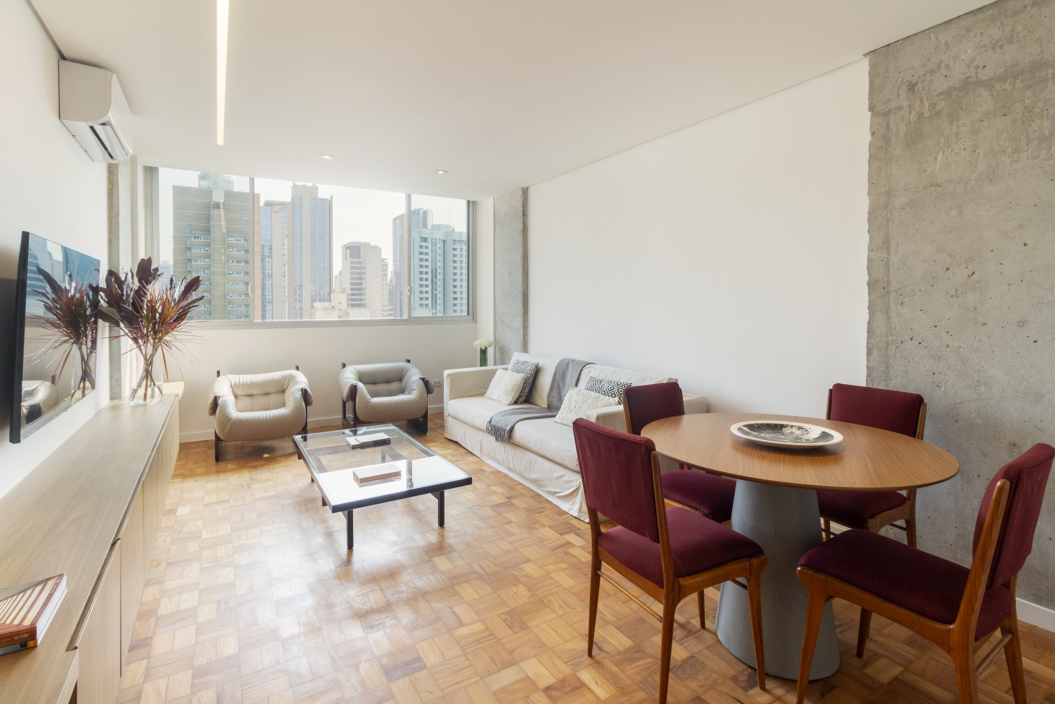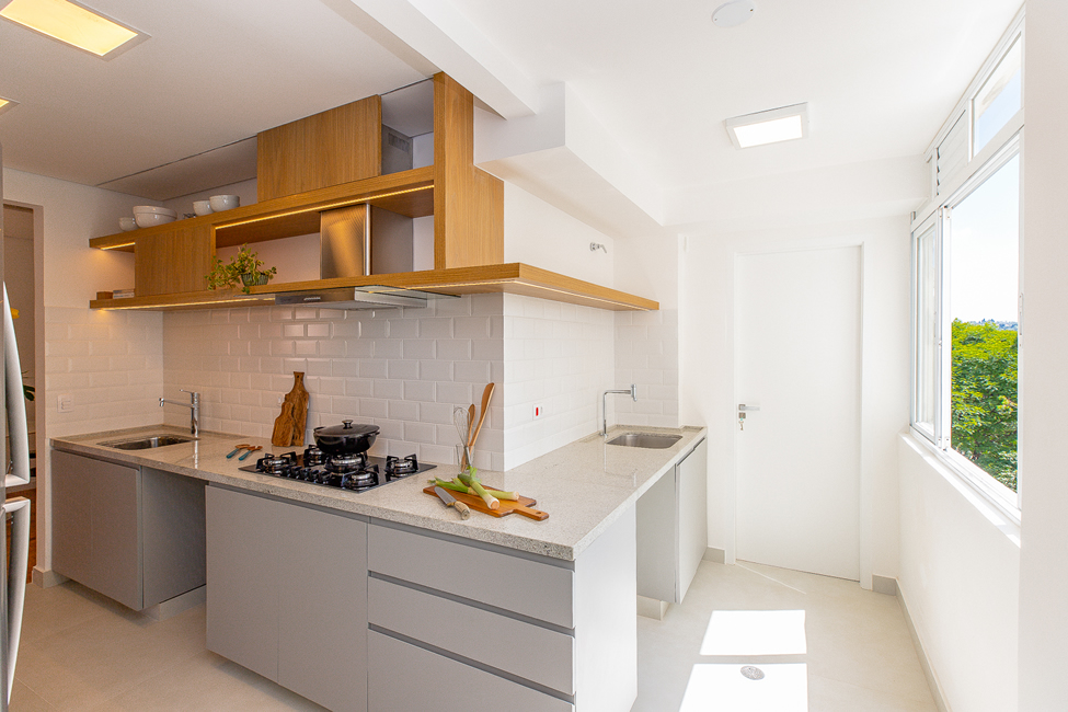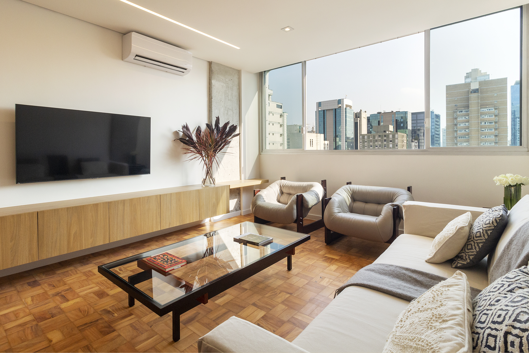 Mobiliado; Equipado com eletrodomésticos; Ar condicionado em todos os ambientes; Cozinha americana; sala de jantar, sala de TV, Quarto amplo, bem iluminado, armários personalizados nos dois quartos principais, deposito, WC de serviço;
